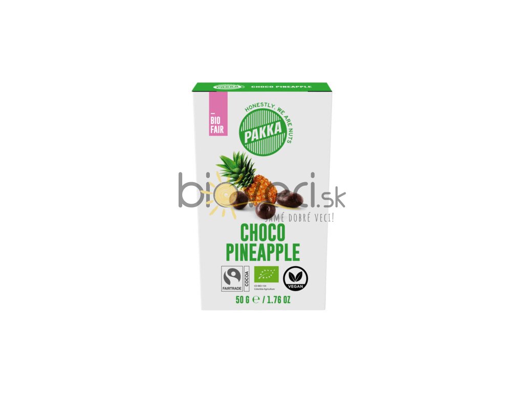 Prísady: | kúsky ananásu v tmavej čokoláde: sušený ananás* 50%, kakao* 32% (kakaová hmota, kakaové maslo), trstinový cukor* 18%. * prísady z kontrolovaného ekologického poľnohospodárstva. Môže obsahovať stopy sóje, mlieka, lepku a orechov. |