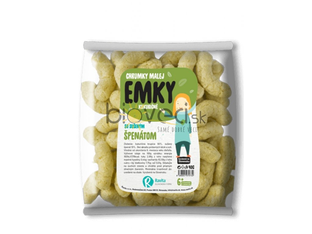 Chrumky malej Emky kukuričné so špenátom 40g RAVITA