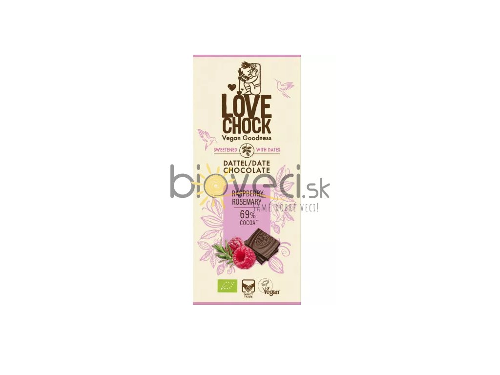 Ďatlová čokoláda s malinami a rozmarínom BIO 70g LOVECHOCK