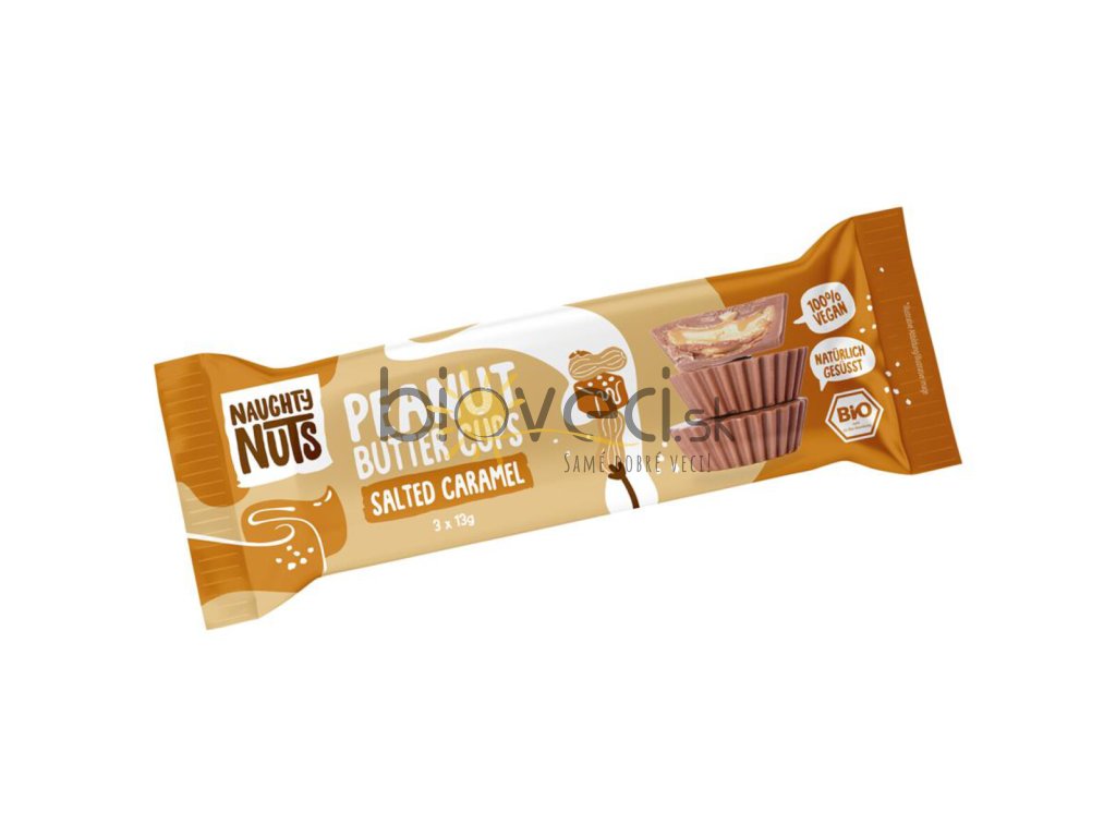 Čokoládové košíčky slaný karamel BIO 39g NAUGHTY NUTS