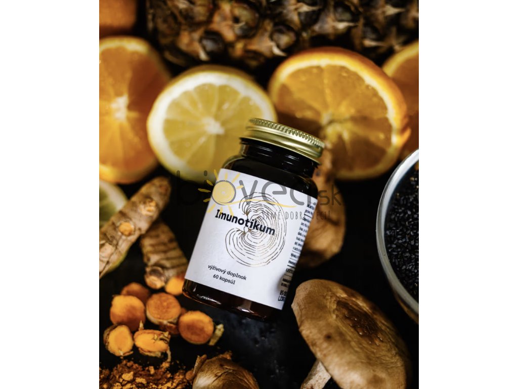 Do Imunotika sme použili ten najkvalitnejší extrakt z kurkumy, ktorý je v súčasnosti dostupný na trhu. Obsahuje kombináciu patentovaných extraktov Curcumin C3 Reduct® a Curcumin C3 complex® so širokým obsahom viacerých druhov kurkuminoidov (curcumin, tetrahydrocurcumin, demethoxycurcumin, bisdemethoxycurcumin). Extrakt z kurkumy má množstvo pozitívnych účinkov na naše zdravie. Pomáha udržiavať zdravie pľúc a horných dýchacích ciest, podporuje dobrú chuť do jedla a pomáha v prípadoch straty chuti do jedla. Taktiež podporuje zdravie pečene, zlepšuje produkciu a kvalitu krvi a zlepšuje funkciu srdca a obehového systému. Extrakt z kurkumy pomáha kontrolovať zápalové reakcie v tele a prispieva k správnej funkcií nervového systému. Navyše udržiava správnu činnosť imunitného systému a zvyšuje odolnosť organizmu voči alergiám.
