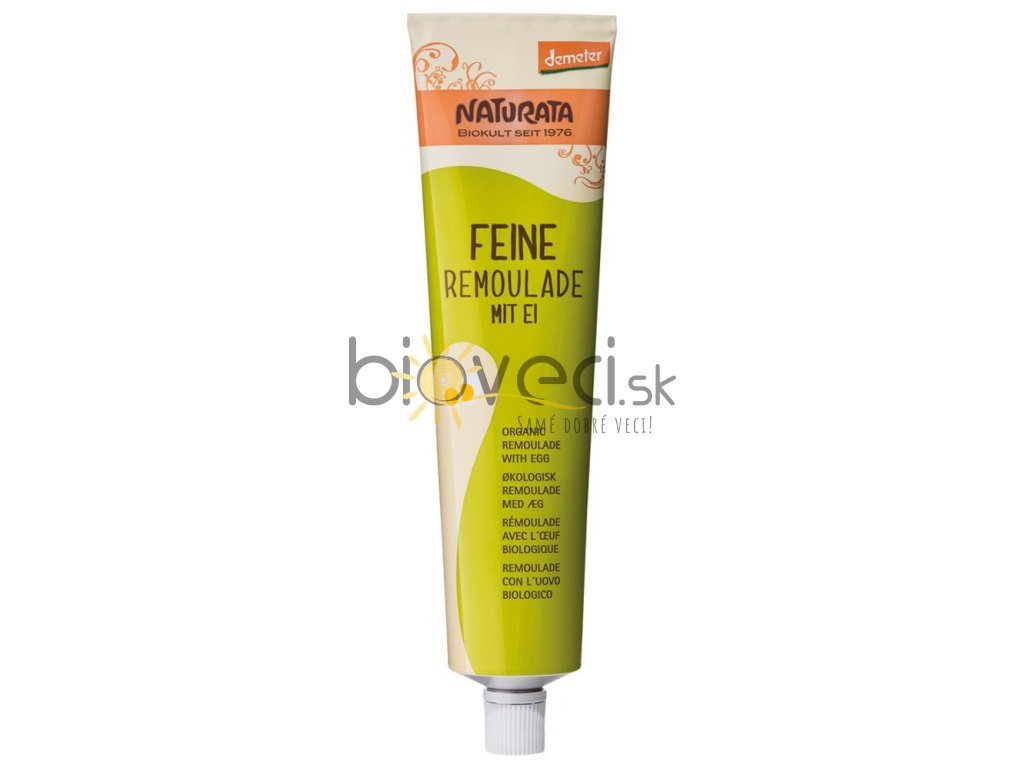| Prísady: | Slnečnicový olej ** 63%, uhorka **, VAJEČNÝ Žĺtok ** 5,5%, HORČICA (voda, HORČIČNÉ ZRNÁ **, brandy ocot *, jablčný ocot **, morská soľ, surový trstinový cukor **, kurkuma *), voda, surový trstinový cukor **, citrónová šťava **, brandy ocot *, cibuľa *, morská soľ, cesnak *, pažítka * |