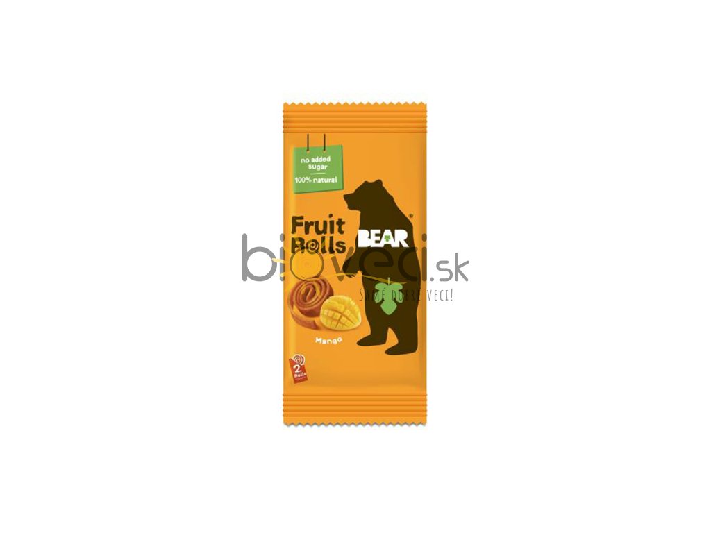BEAR-ové ovocné rolky sú chutné jemne pečené rolky vyrobené len z ovocia a/alebo zeleniny. Vhodné pre deti od 12 mesiacov, vegetariánov a vegánov. Sú skvelou alternatívou voči klasickým gumeným cukríkom. 20g balenie pokrýva 1 z 5 odporúčaných denných dávok ovocia a zeleniny a obsahuje rovnaké množstvo ovocného cukru ako 1 malé jablko. Na výrobu 100g ovocných roliek je použitých 650g ovocia a/alebo zeleniny a nič viac, pečené pri teplote 42°C po dobu približne 8 hodín. Súčasťou každého balenia je zberateľská kartička.