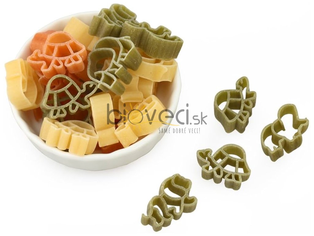 Cestoviny sú v BIO kvalite a okrem organickej semolínovej múky obsahujú bio sušené paradajky, bio sušený špenát a vitamín B1. Vo svojich 100 g navyše ukrývajú 11 g bielkovín . Jesť tieto cestoviny bude deti baviť.