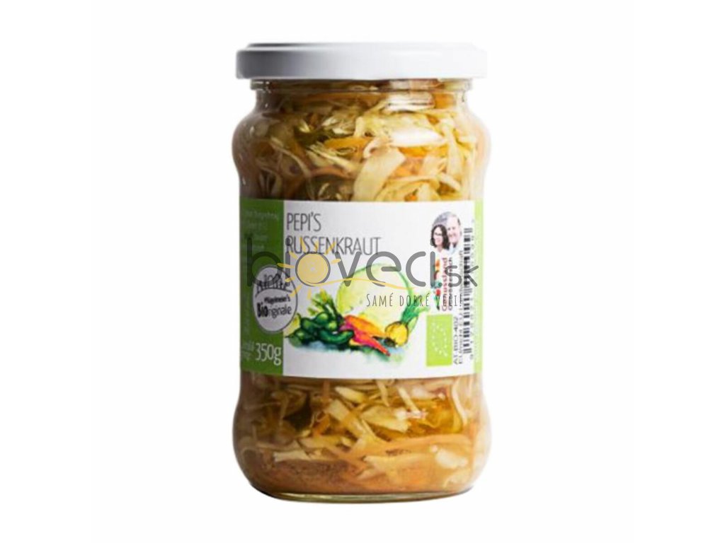 | Prísady: | Kapusta* (38%), voda, liehový kvasný ocot*, uhorky* (5%), mrkva* (5%), cibuľa* (5%), surový trstinový cukor*, jarná soľ, horčičné semienko*, korenie* |